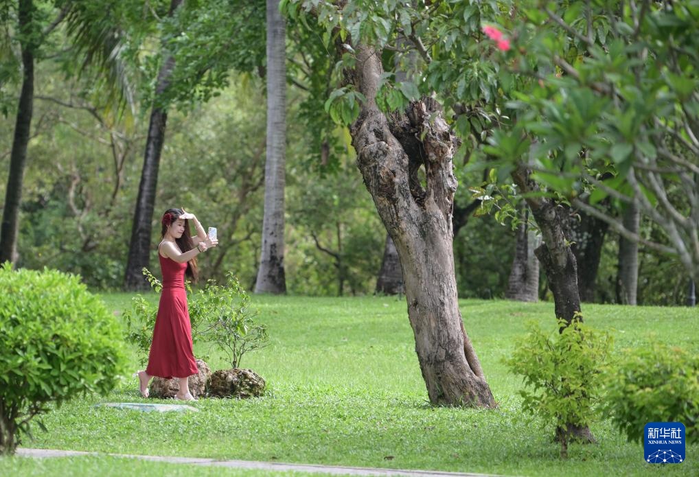 7月22日,游客在海南省三亚市白鹭公园游玩。
