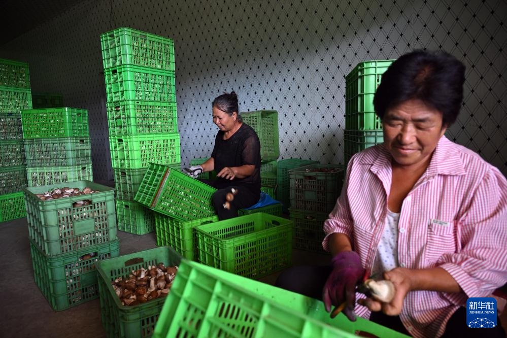 7月26日,当地农民在隆化县章吉营镇分拣香菇。