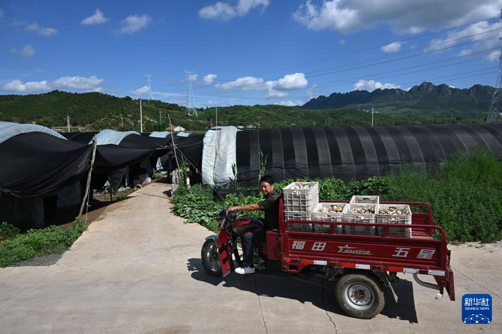 7月26日,当地农民在隆化县章吉营镇采摘香菇。