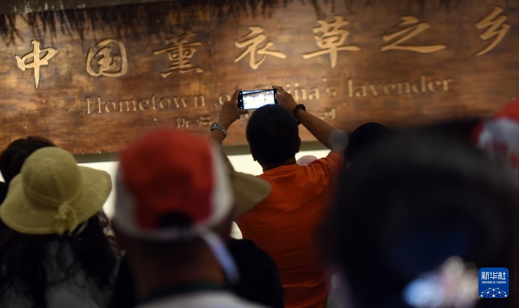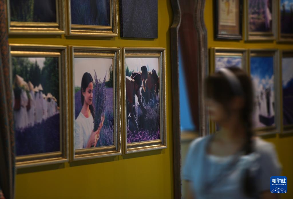 游客在新疆霍城县薰衣草博物馆参观游览(7月26日摄)。