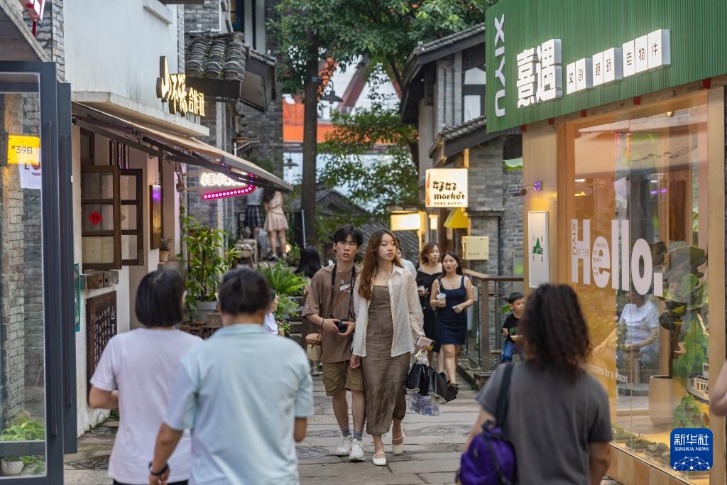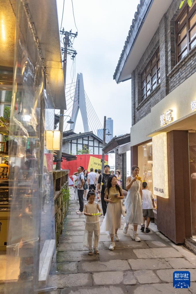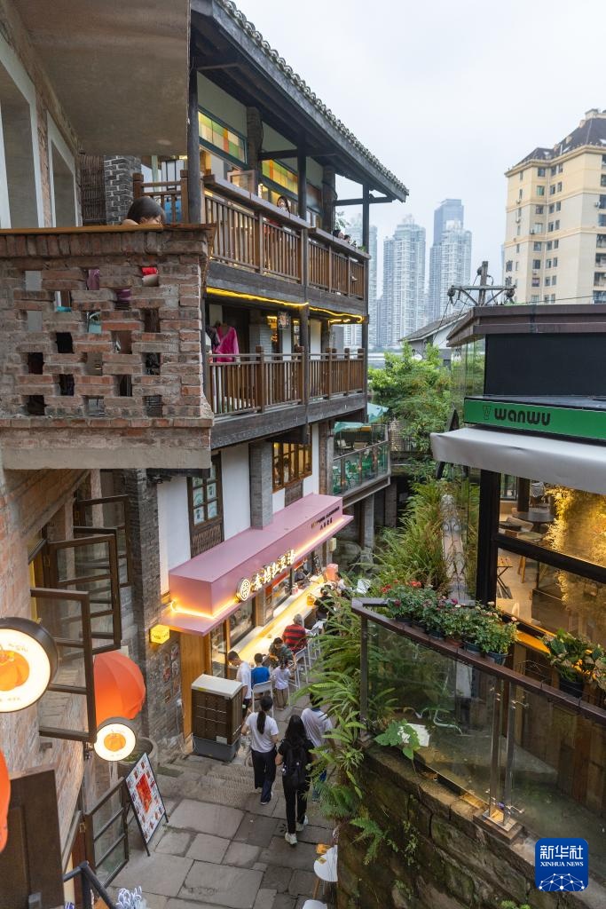 地处重庆市南岸区南滨路中段的龙门浩老街是重庆首批城市更新试点项目,老街区域内有两百多幢不同时期、不同形态的建筑,开埠文化、巴渝文化在此交融。近年来,当地秉承“变拆为留”理念,将自然、文化、艺术、数字等元素融入老街的更新改造中,并根据老街历史文化特点进行业态布局。