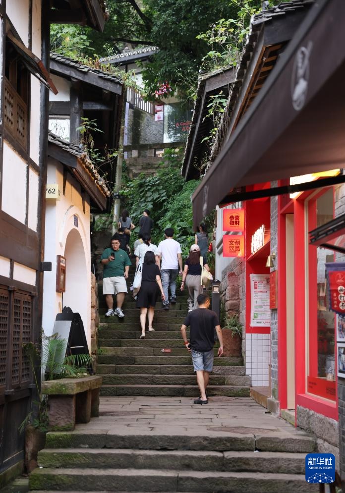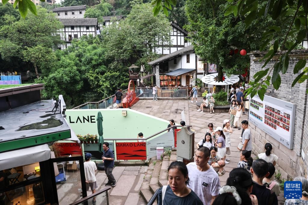 7月28日,游客在龙门浩老街·下浩里参观游览。