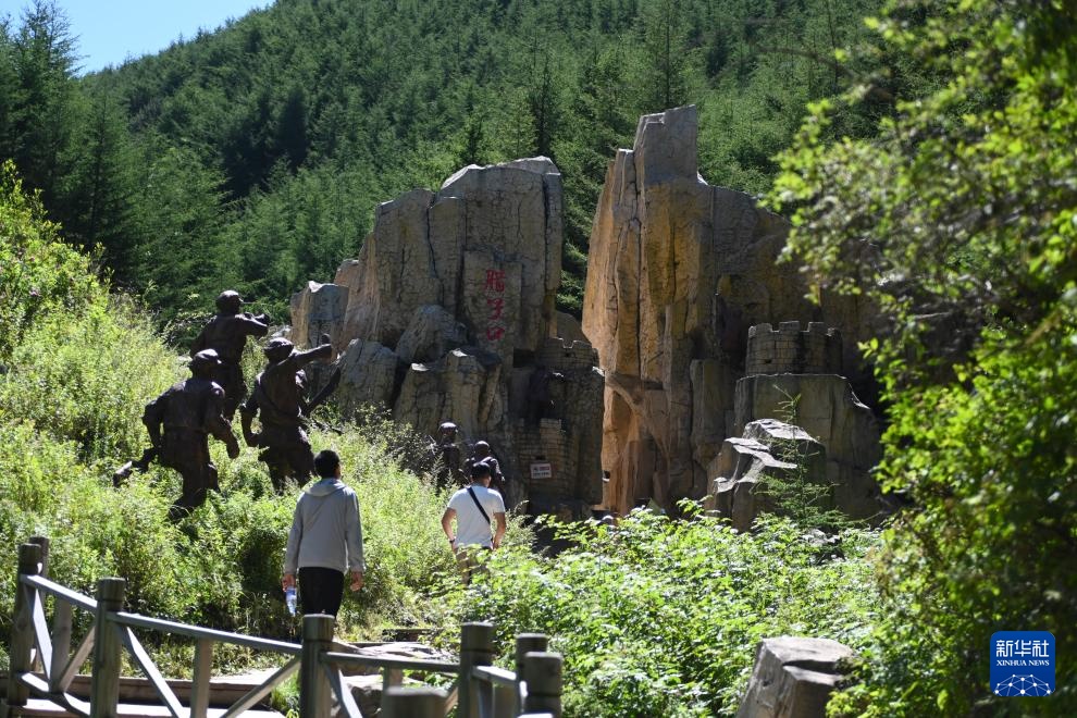 7月30日,游客在六盘山红军长征旅游区“红军小道”参观。