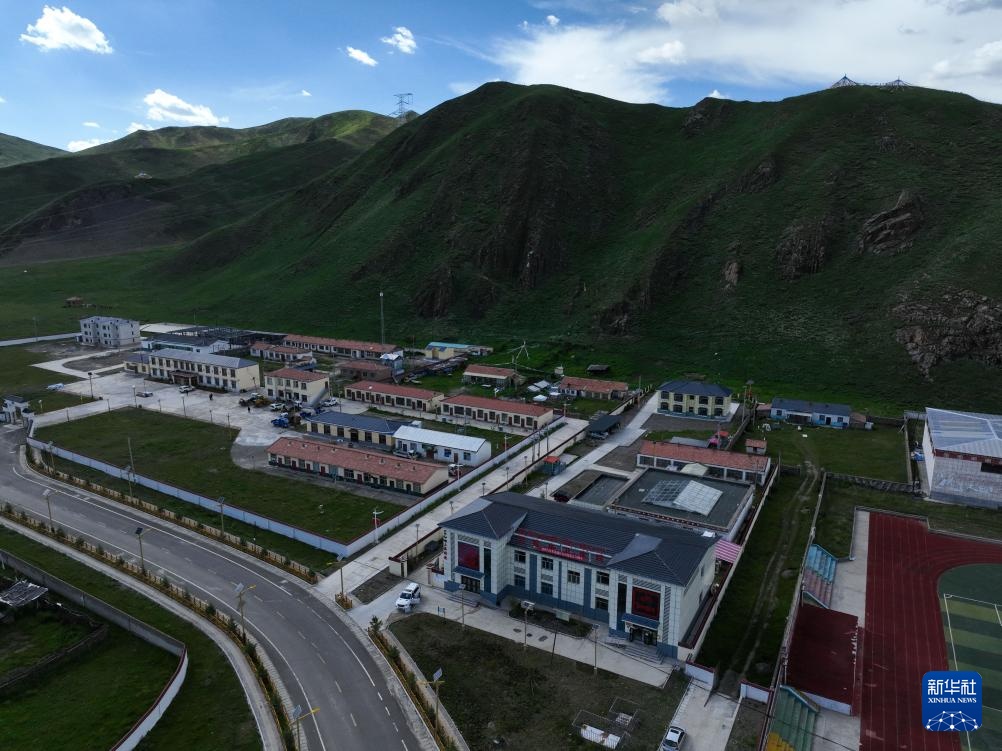 这是7月31日拍摄的青海省果洛藏族自治州达日县窝赛乡卫生院,当地平均海拔超过4000米(无人机照片)。