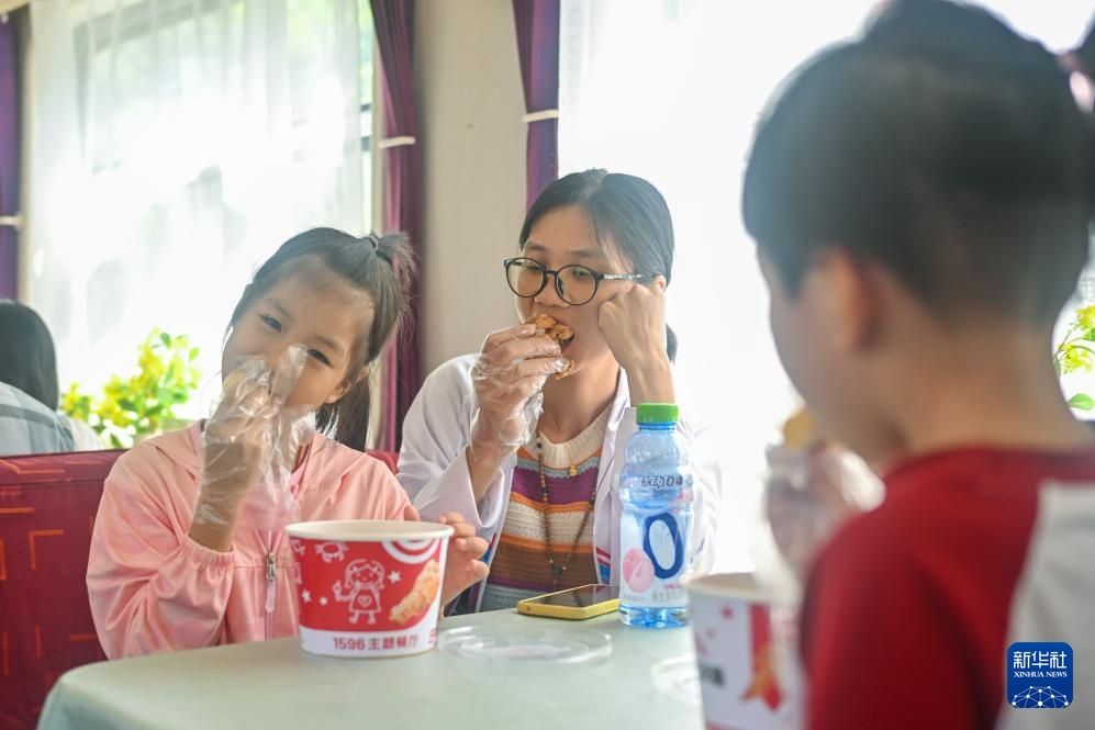 8月1日,旅客在K210次列车上品尝儿童套餐。