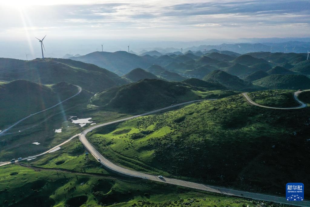 这是8月1日拍摄的贵州省威宁县百草坪景区旅游公路(无人机照片)。