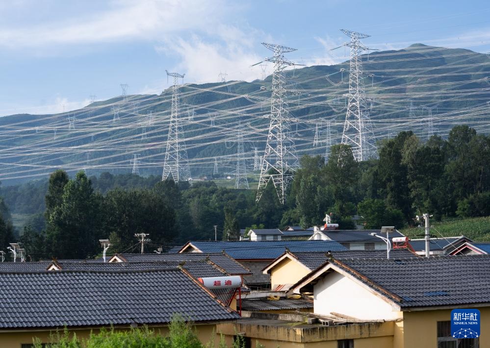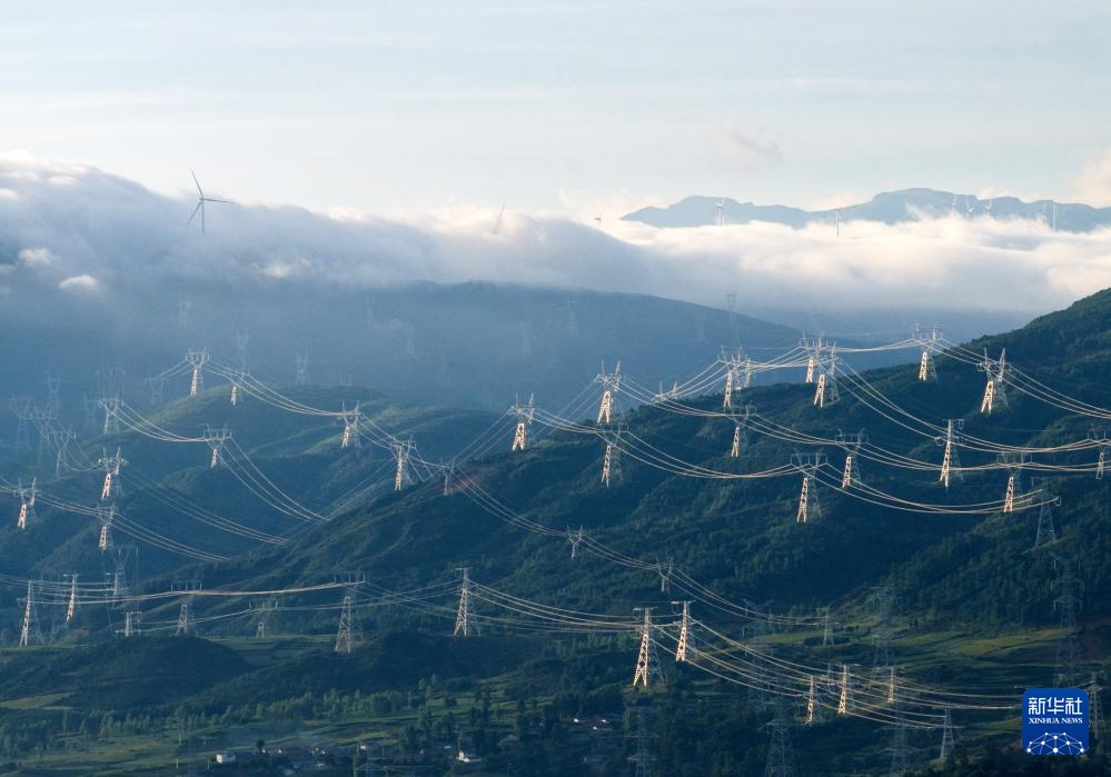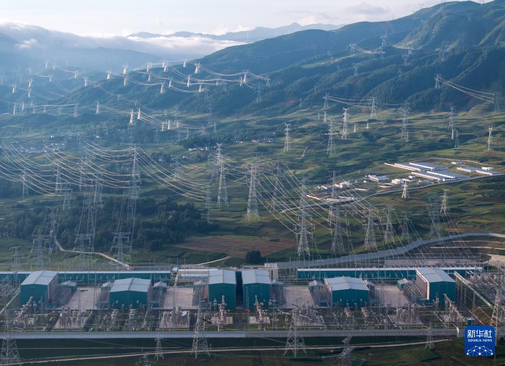远眺从白鹤滩水电站到布拖换流站的输电线路(7月23日摄)。