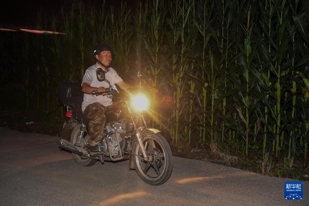 7月30日,临城村党支部书记金勇诚骑摩托车赶往临时安置点。