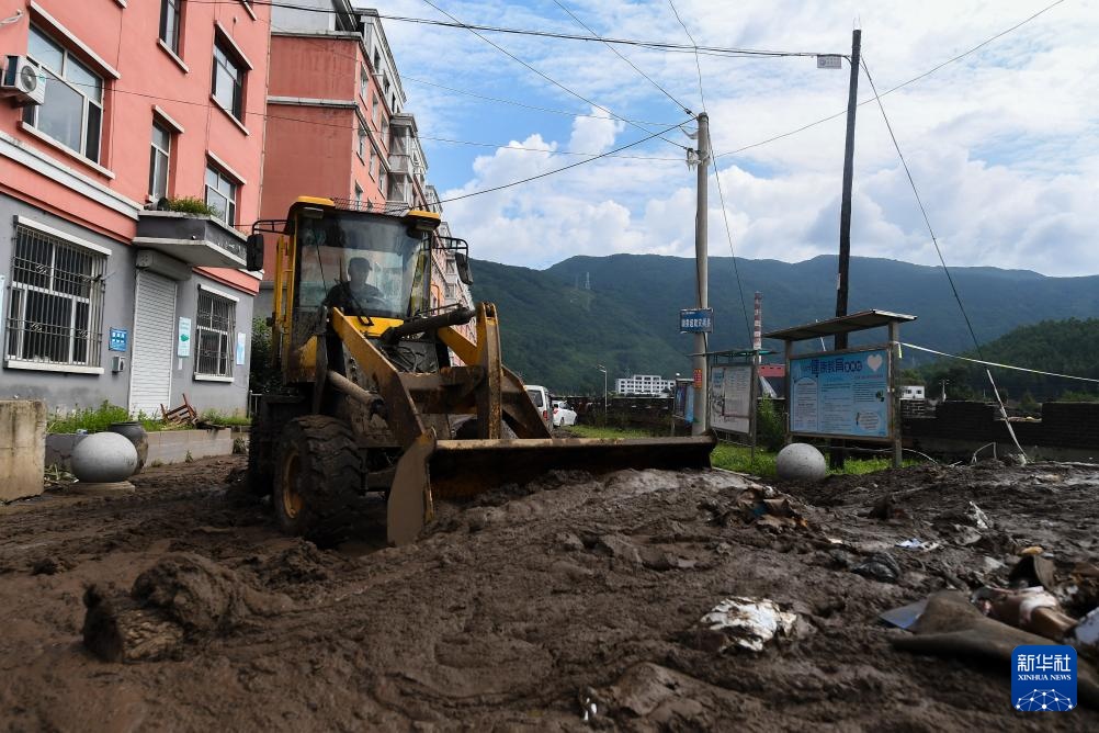 7月30日,铲车在临城村清理淤泥。