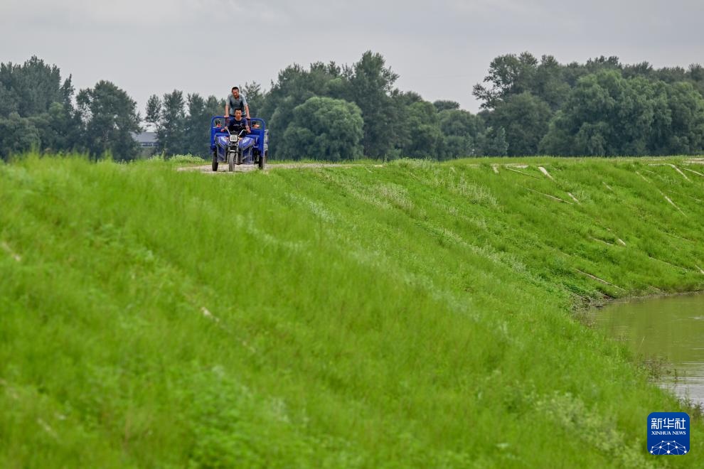 8月2日,当地村民在东辽河大堤上巡护。