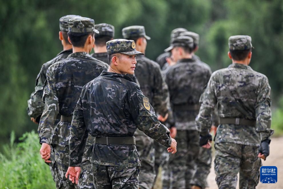 8月2日,武警内蒙古总队通辽支队官兵在东辽河大堤上巡护。