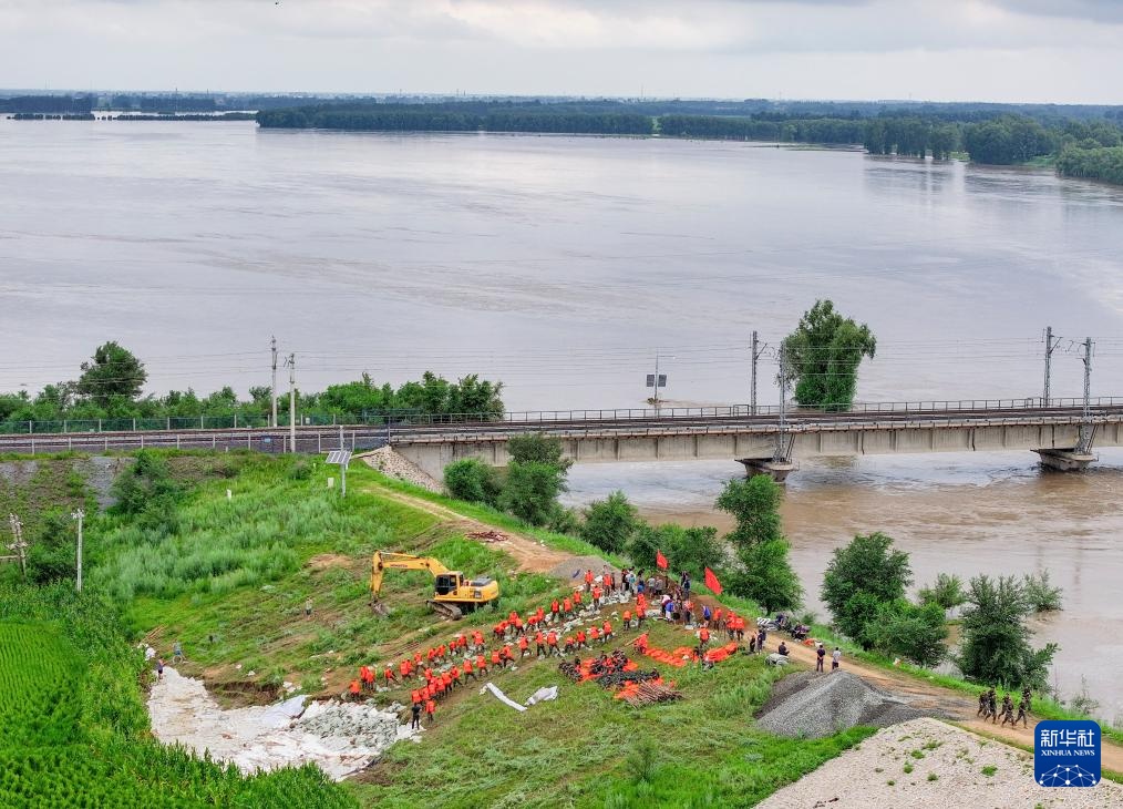 为应对东辽河汛情,内蒙古通辽市科尔沁左翼后旗双胜镇有序引导1.9万余名群众转移,积极组织防汛力量对大堤进行除险加固,全力以赴防汛情。