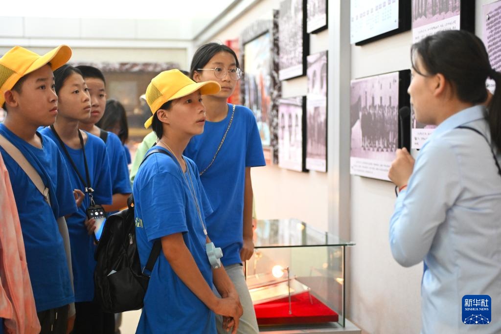 8月1日,中学生参观三军会师纪念馆。