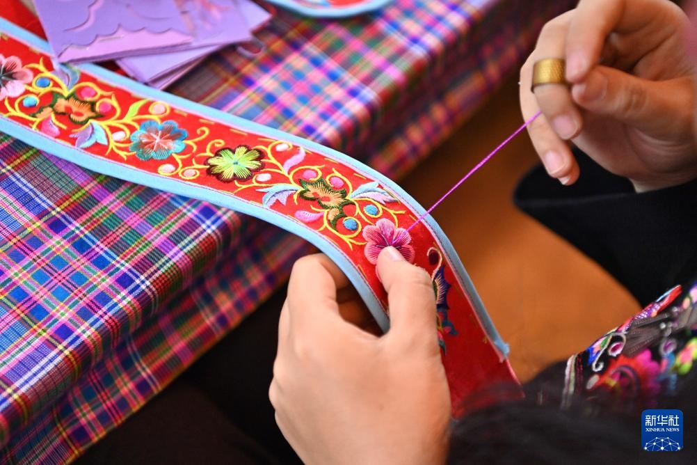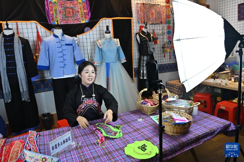 地处滇、黔、桂三省(区)交界的广西百色隆林县民族风情多样,被誉为“活的少数民族博物馆”。对于在隆林县土生土长的“90后”班雁虹来说,富有民族特色的壮族刺绣让她着迷,自幼便跟随母亲学习刺绣和制作民族服饰。2020年3月,班雁虹开始在社交平台分享家乡的多彩生活、推广民族服饰、展示当地传统文化。目前,班雁虹在隆林县城开设了自己的工作室,不断探索创新传统技艺。
