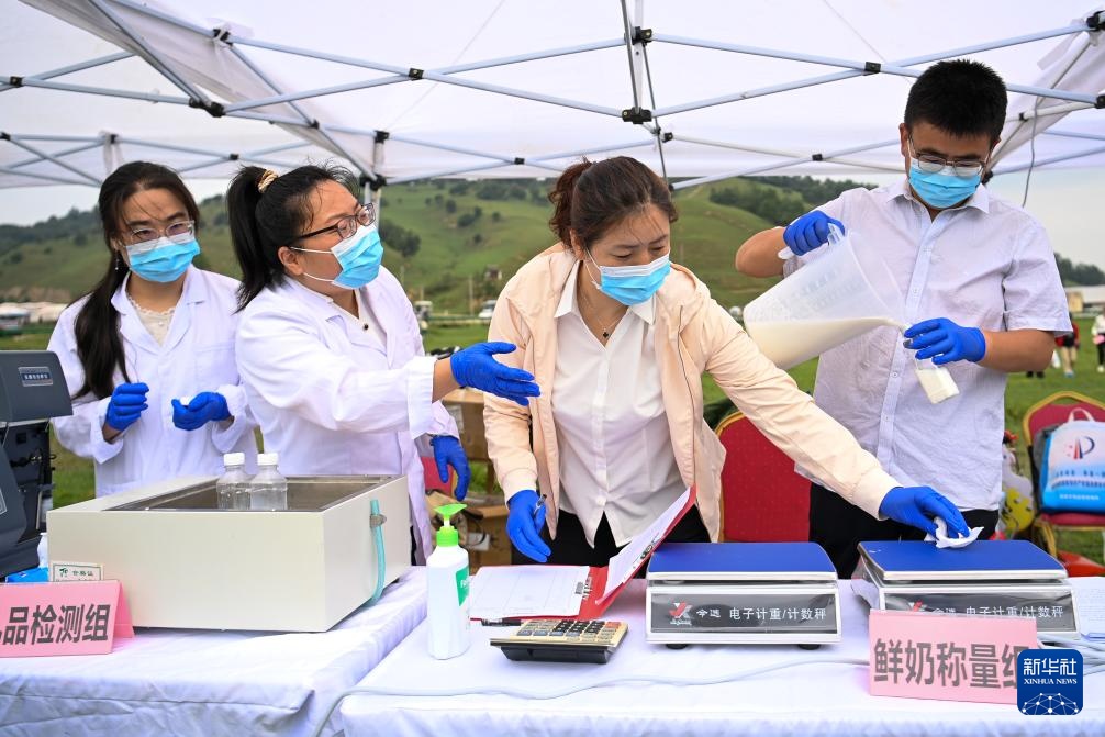 8月2日,工作人员对参赛奶山羊的乳品进行现场称重。