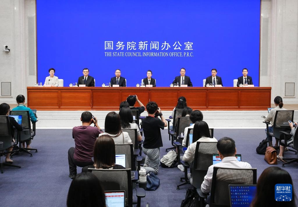 8月2日,国务院新闻办公室在北京举行国务院政策例行吹风会,国家发展改革委副主任郑备,公安部治安管理局局长仇保利,财政部经济建设司司长符金陵,人力资源社会保障部农民工工作司司长尚建华,自然资源部空间规划局局长张兵,住房城乡建设部新闻发言人、住房改革与发展司司长王胜军介绍《深入实施以人为本的新型城镇化战略五年行动计划》有关情况,并答记者问。新华社发(赵一帆摄)