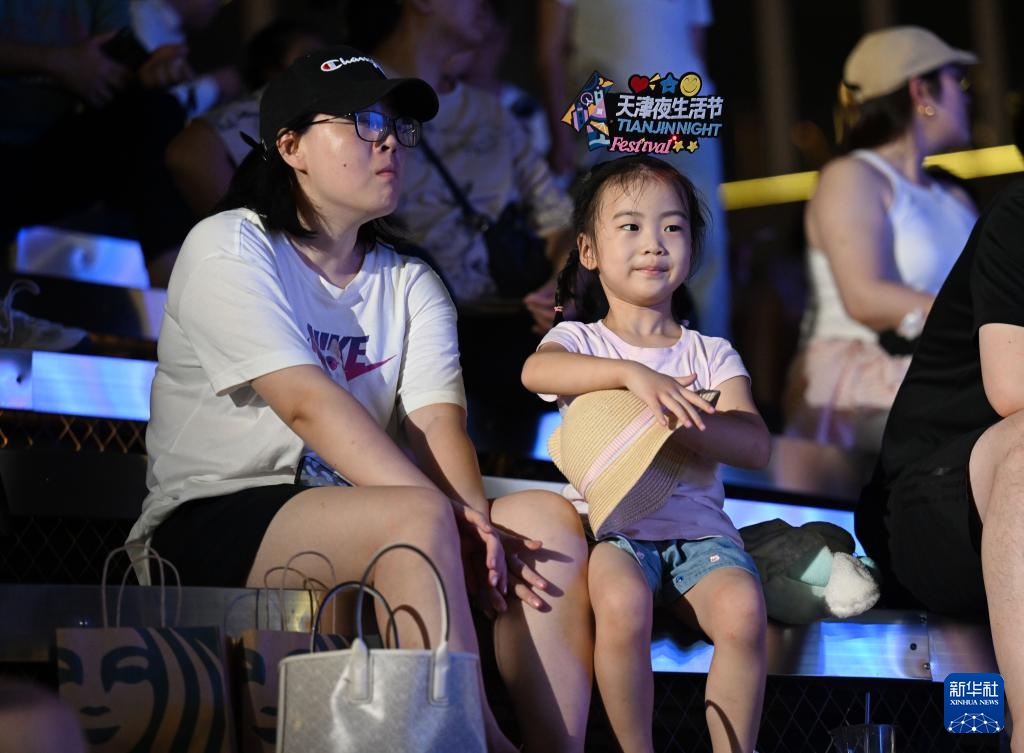 8月2日,游客在第五届天津夜生活节启动仪式现场观看演出。