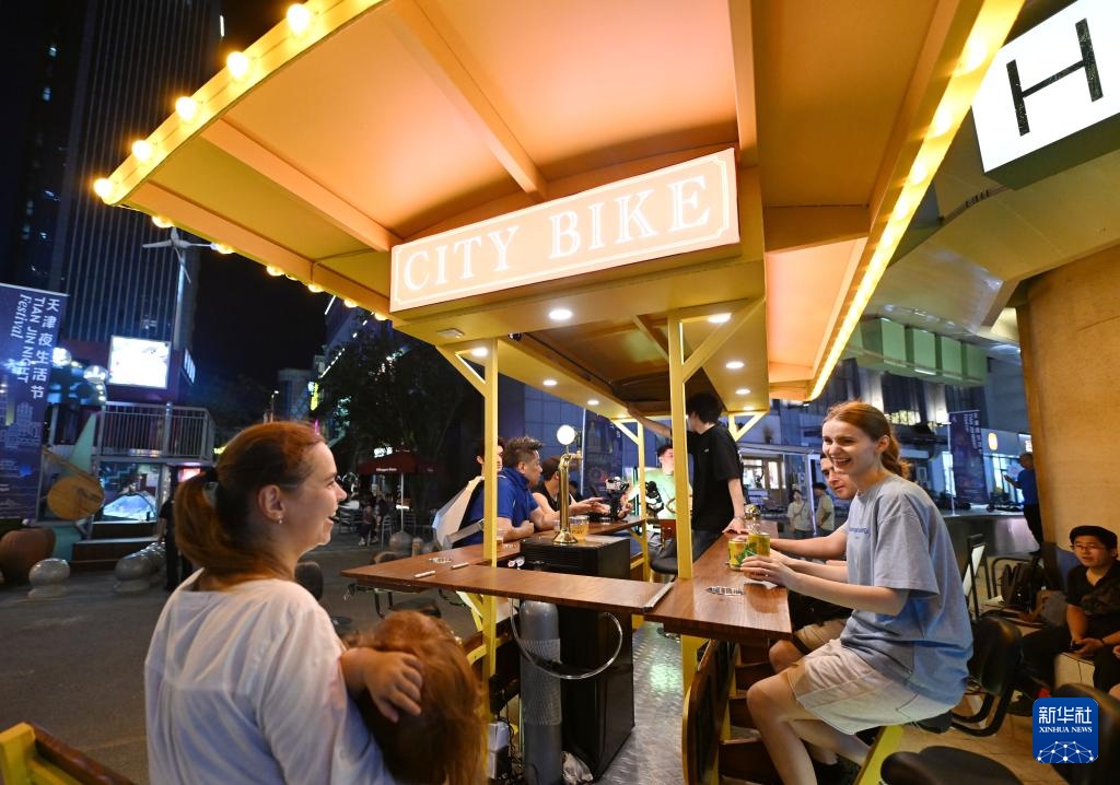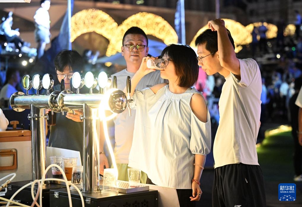 8月2日,游客在第五届天津夜生活节启动仪式现场品尝精酿啤酒。
