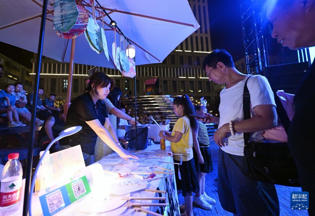 8月2日,游客在第五届天津夜生活节启动仪式现场设置的市集上选购。