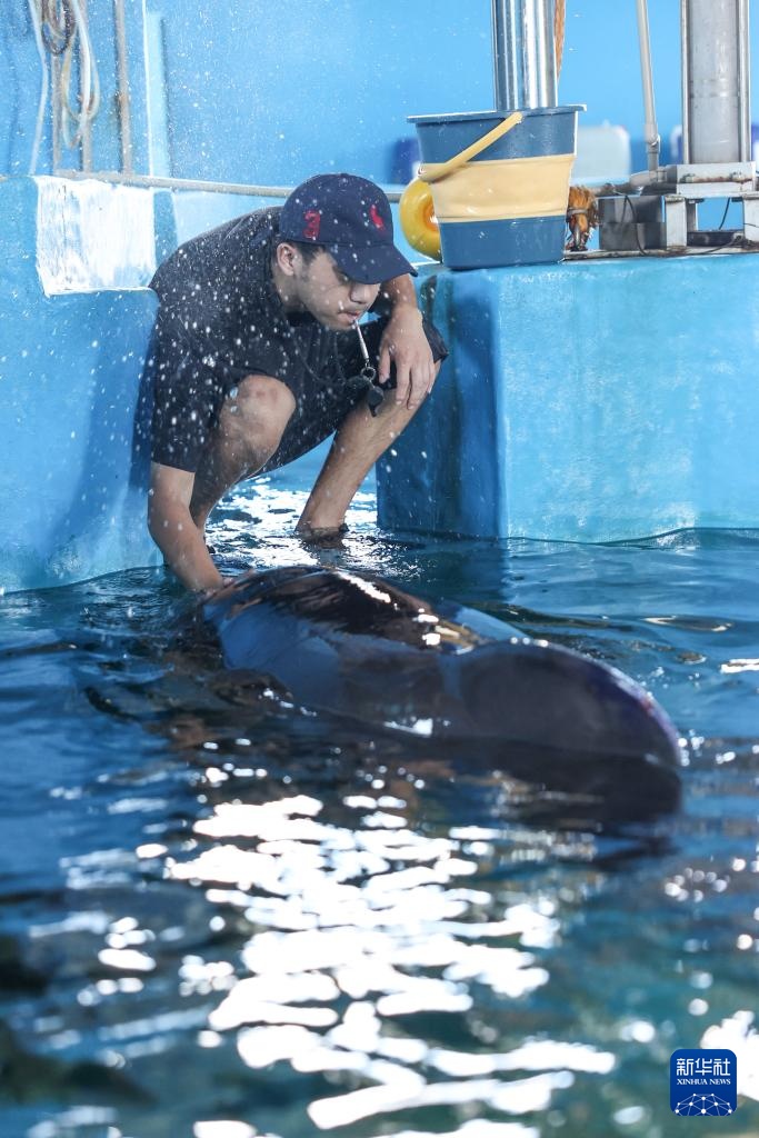 近日,在海南三亚海棠湾因搁浅被救助的短肢领航鲸“海莉”行为恢复良好,开始自主下潜与进食。为了增加其活动量,救助团队将其活动区域由医疗池增加至三个水池,后续将根据“海莉”的身体状况进一步确定治疗方案和放归计划。据了解,短肢领航鲸“海莉”刚被救助时身体无法保持平衡,也不能自主进食,前期只能依靠救助人员托扶和灌食。