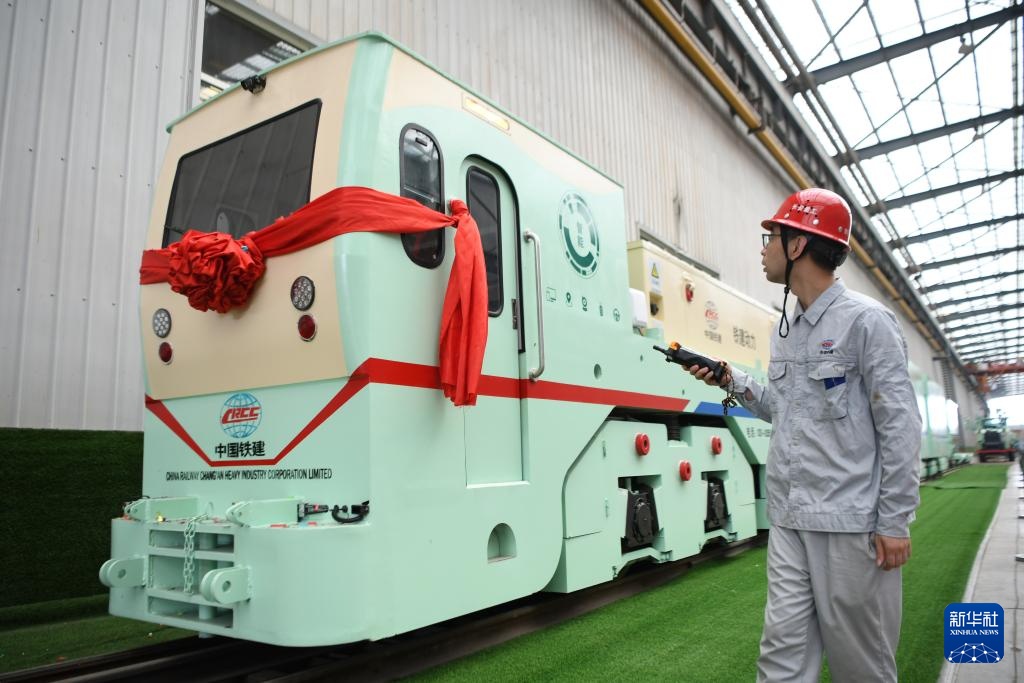 8月3日,中铁长安重工有限公司技术人员通过遥控设备对无人驾驶电机车进行操作。