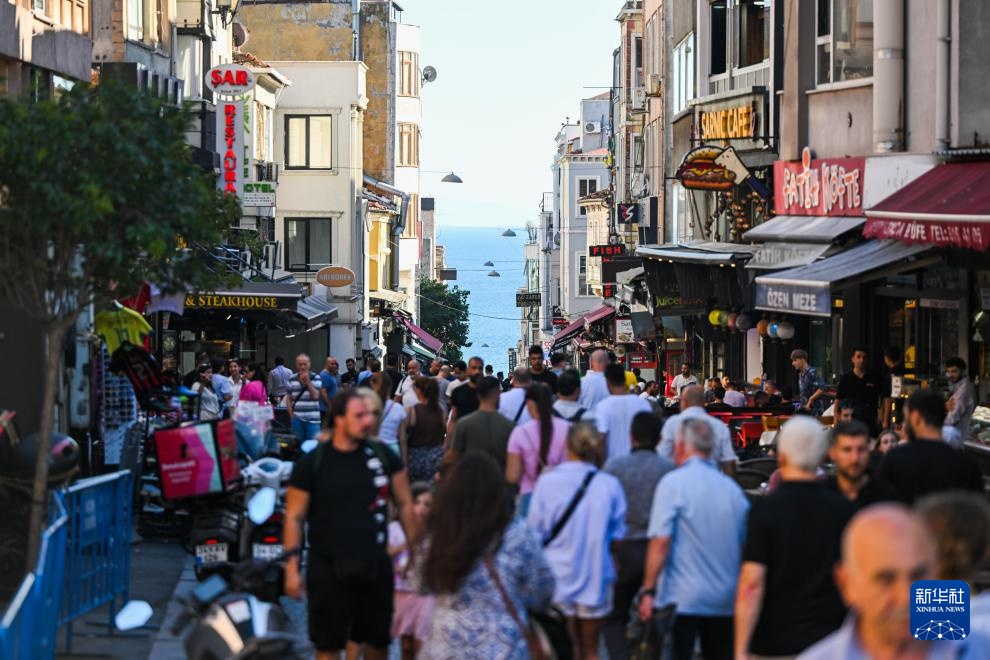 8月2日,游客在土耳其伊斯坦布尔街道上游览。