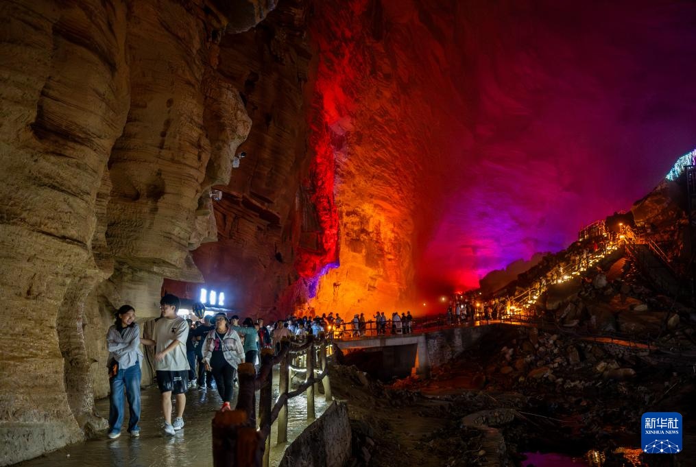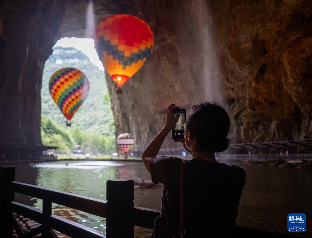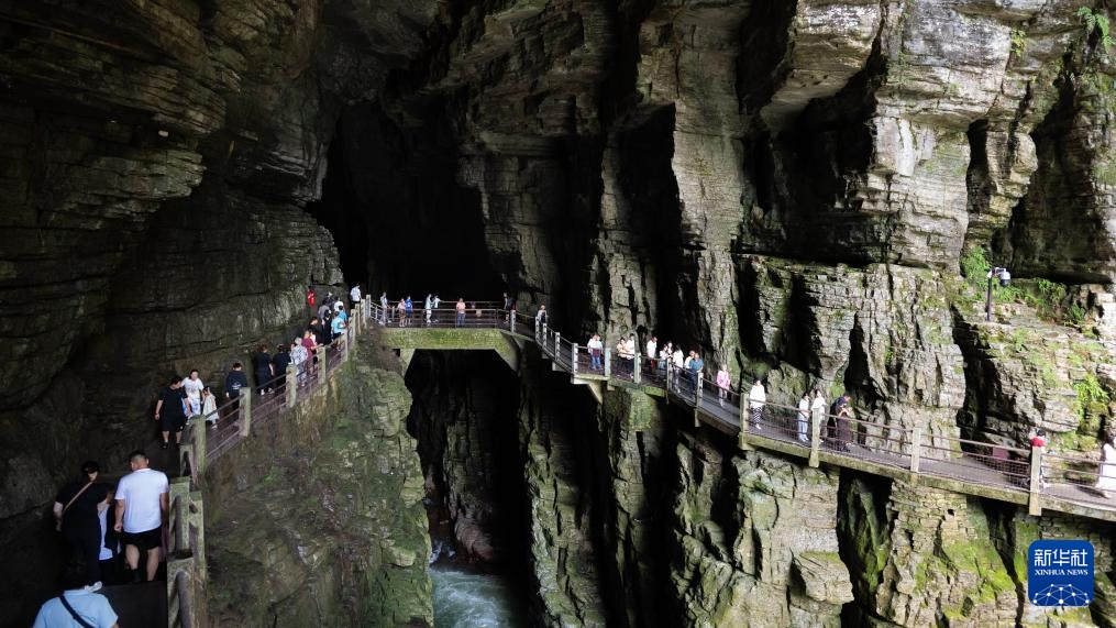 盛夏时节,位于湖北省恩施土家族苗族自治州利川市的腾龙洞景区清爽宜人,吸引众多游客。