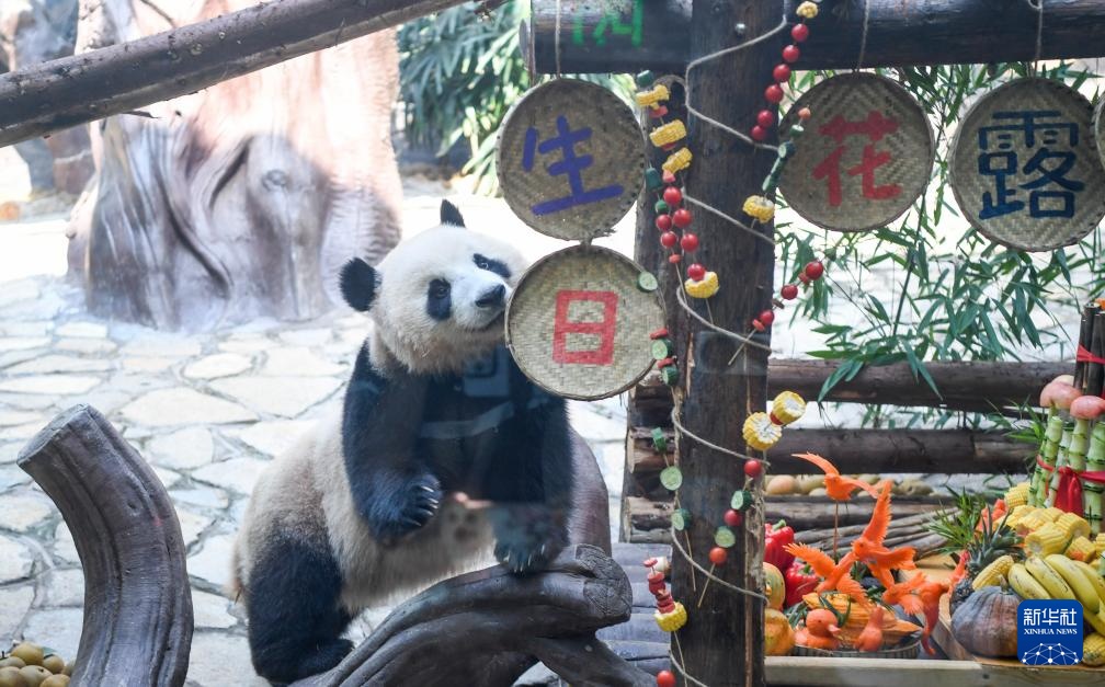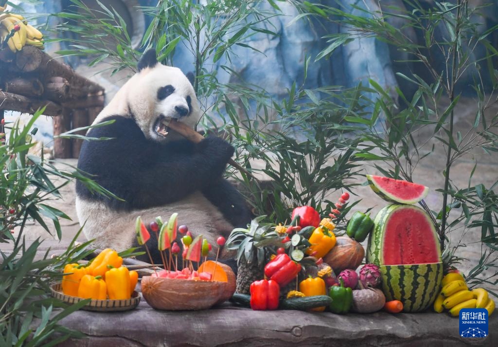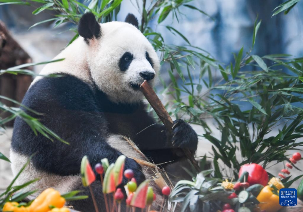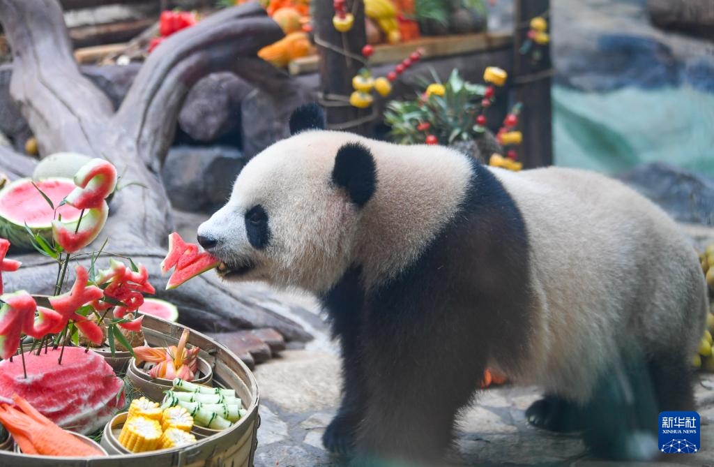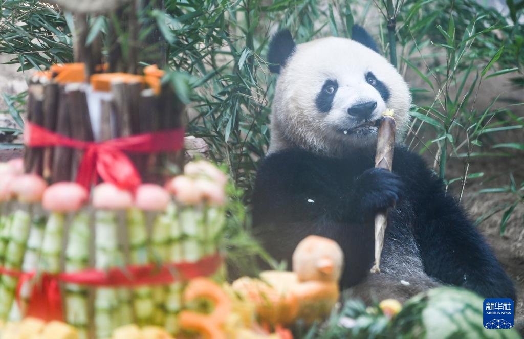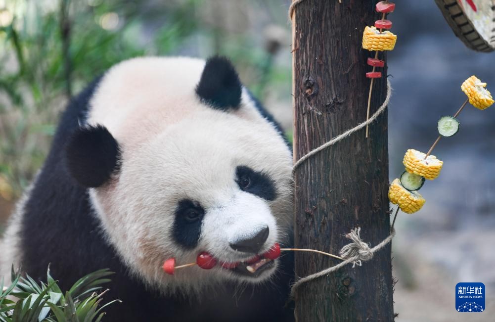 当日,重庆永川乐和乐都动物主题乐园为3岁的双胞胎大熊猫青花、青露和6岁的大熊猫巧月举办趣味十足的集体生日会。