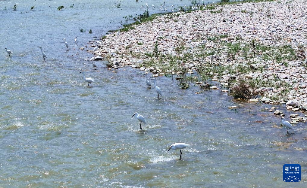 近日,成群的白鹭在位于天津市蓟州区罗庄子镇的泃河畔休憩、觅食、飞翔,与这里的山水构成一幅生态美景图。