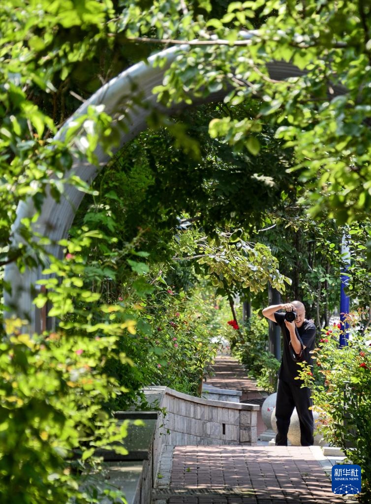 8月6日,一名游客在拍摄李家场村的乡村环境。