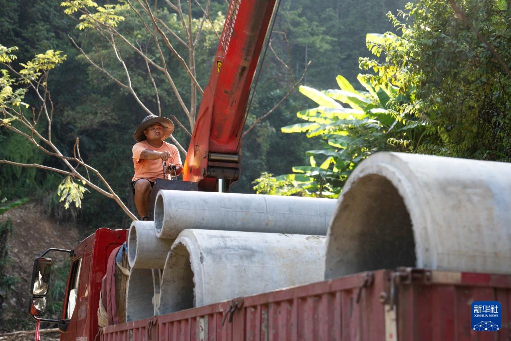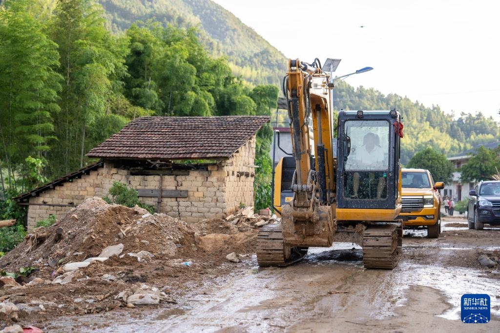 8月7日,在资兴市白廊镇中洞村,抢险队伍在抢修道路。