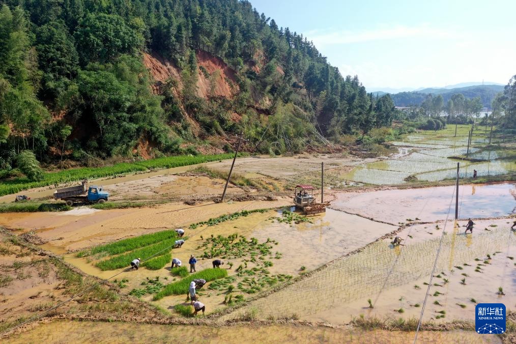 近期,受台风“格美”影响,湖南省资兴市遭遇极端强降雨天气,当地13个乡镇均出现暴雨或特大暴雨。目前,各方力量积极做好抢险救援工作,抢修因灾受损的水、电、路等基础设施,同时对部分受损农田进行翻耕,抢插补插晚稻,加快恢复生产生活秩序。