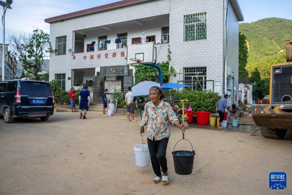 8月7日,在资兴市白廊镇中洞村,村民在取水。