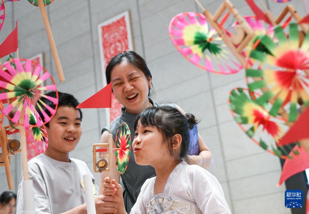 8月7日,小朋友在非遗市集上挑选风车玩具。