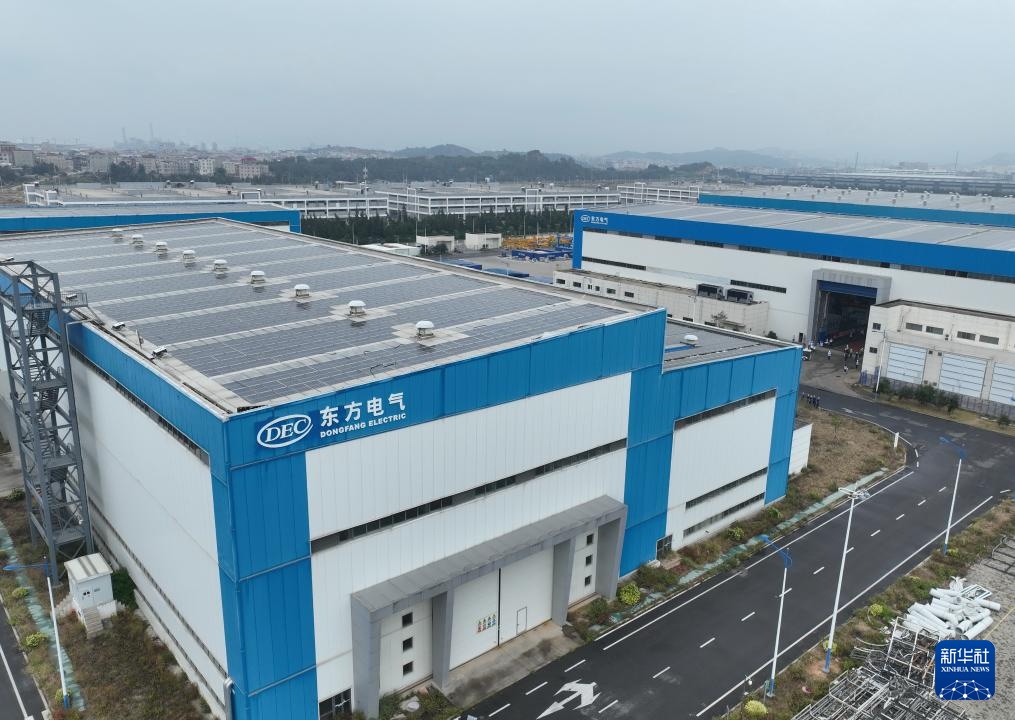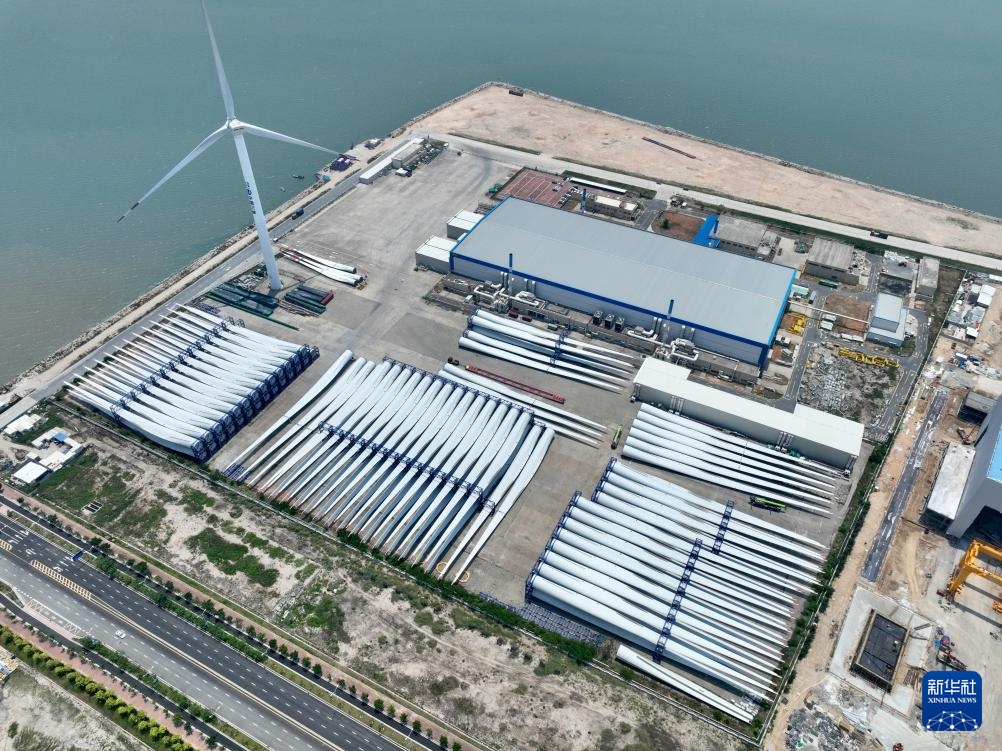 福建三峡海上风电国际产业园内东方电气风电(福建)有限公司生产基地一角(2023年11月10日摄,无人机照片)。
