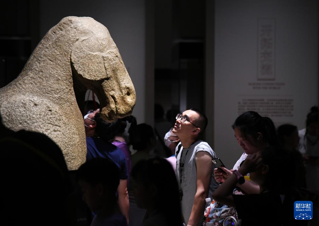 8月7日,游客在陕西历史博物馆秦汉馆参观。