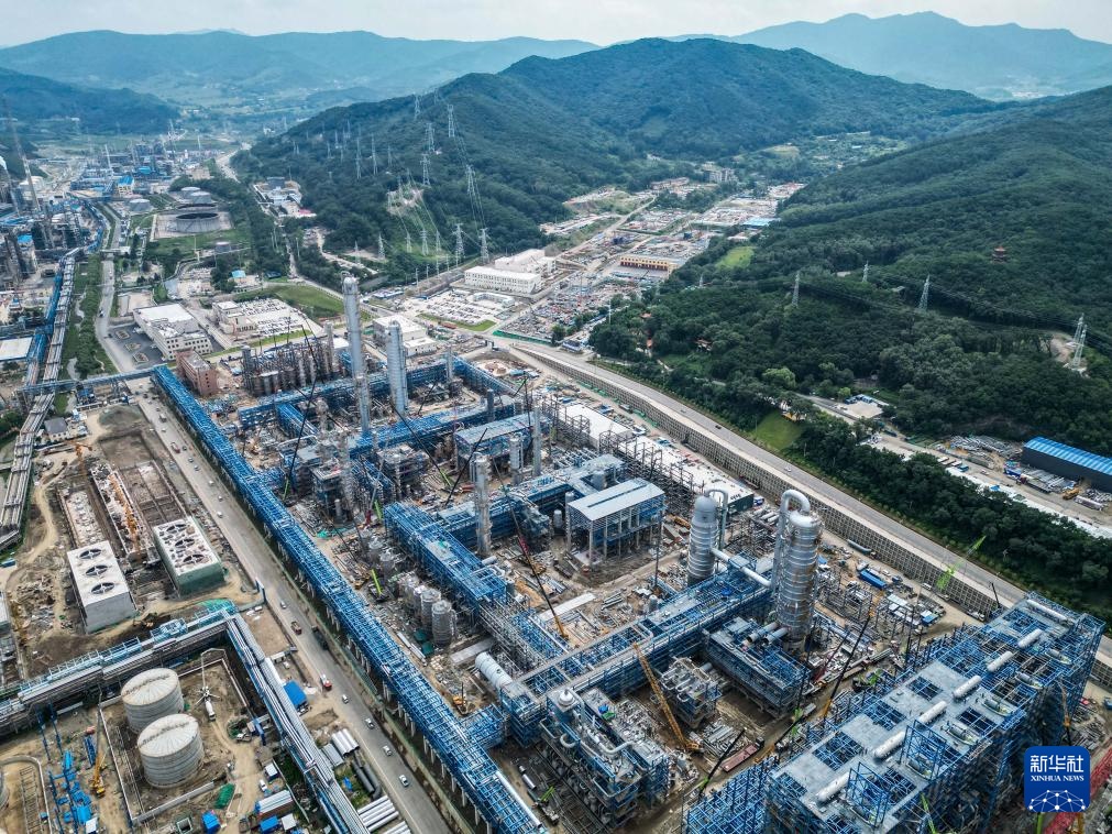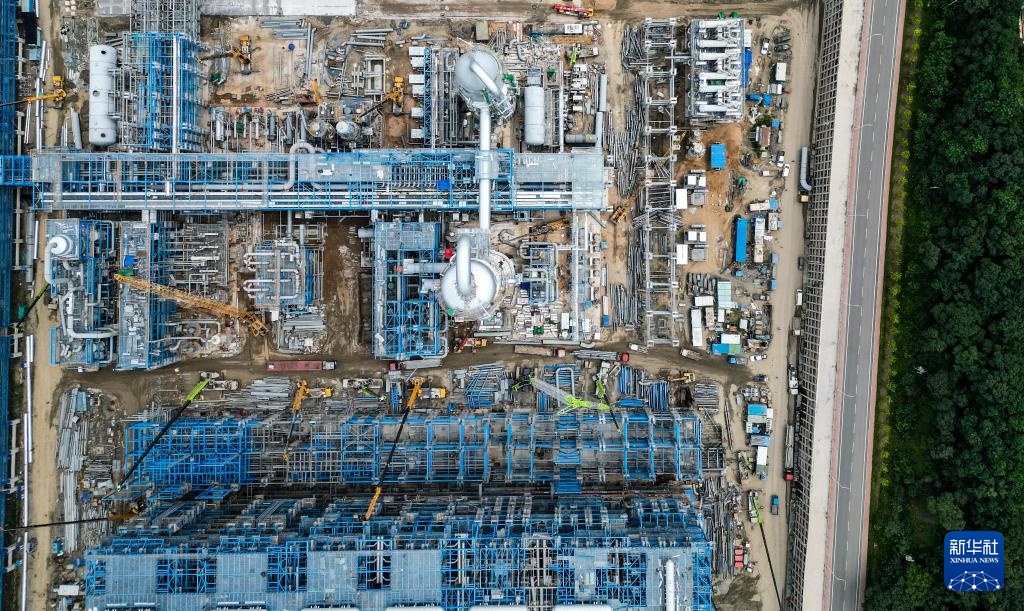8月8日,在吉林省吉林市,吉林石化炼油化工转型升级项目120万吨/年乙烯装置在加紧建设(无人机照片)。
