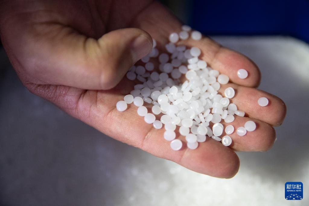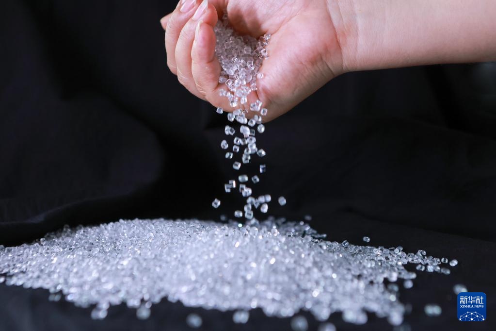 这是辽阳石化公司生产的PETG共聚酯产品(8月7日摄)。