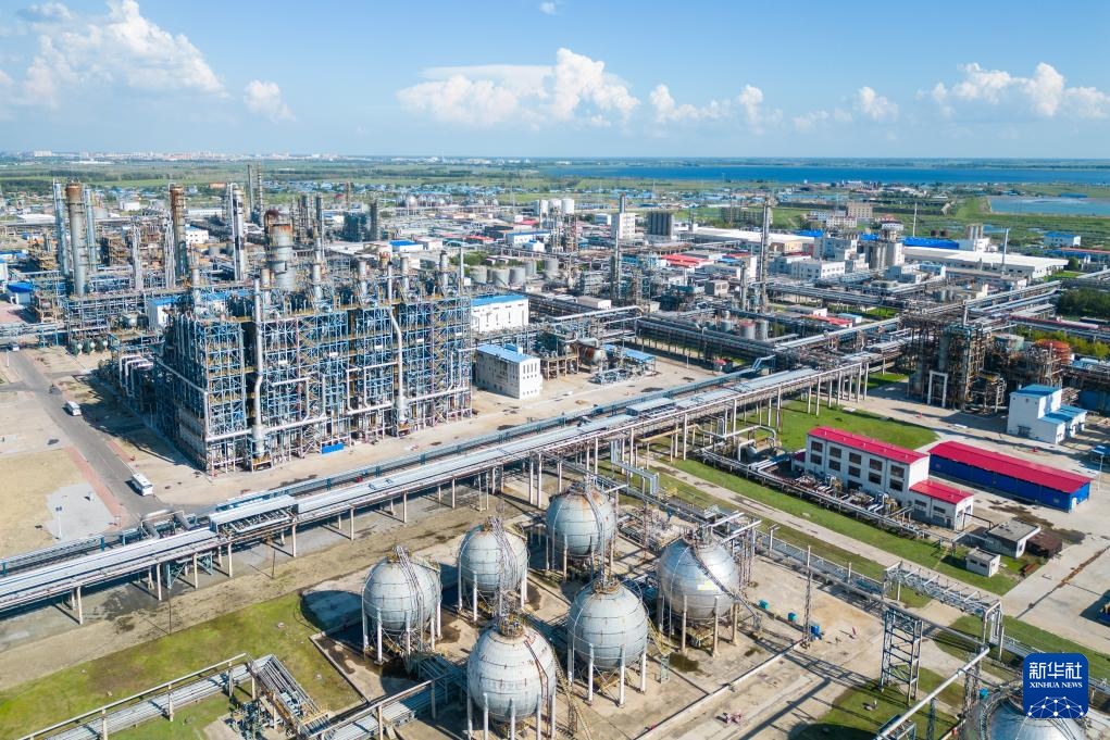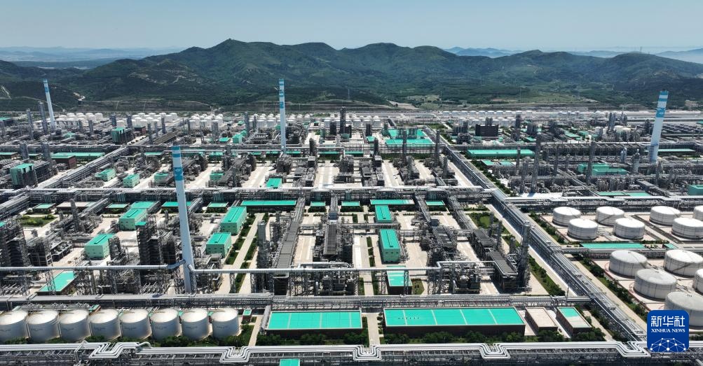 这是位于大连长兴岛的恒力石化产业园,园区新建的恒力新材料科创园包含年产260万吨功能性聚酯、160万吨高性能树脂等项目,可将基础化工品转化为高端化工及新材料产品(6月16日摄,无人机照片)。