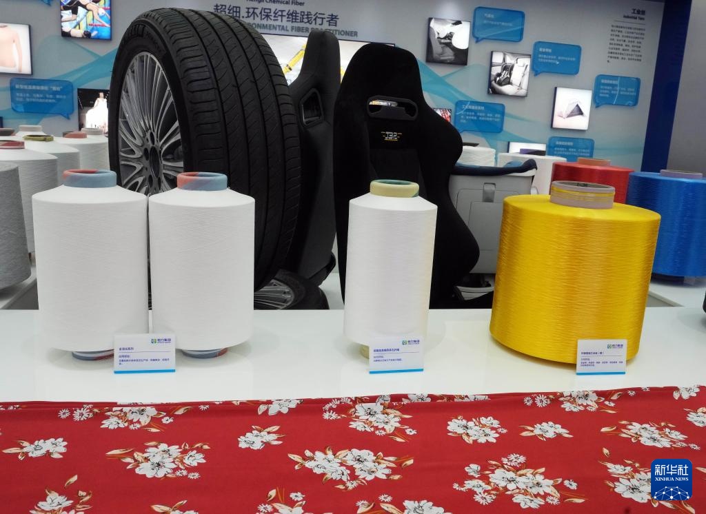 这是位于大连长兴岛的恒力石化产业园内展示的环保纤维和环保高端工业丝产品(6月16日摄)。