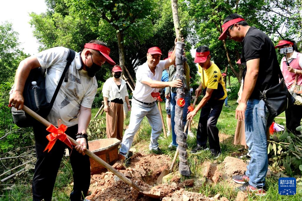 8月10日,在厦门仙岳山公园世纪和平园林,两岸佳偶共种“同心树”。