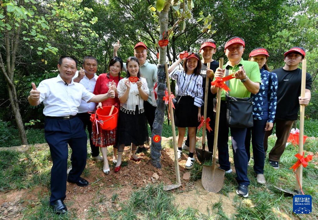 8月10日,在厦门仙岳山公园世纪和平园林,两岸佳偶种下“同心树”后合影留念。