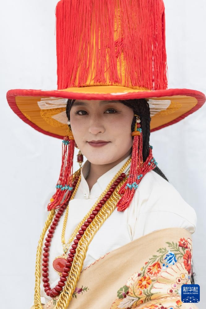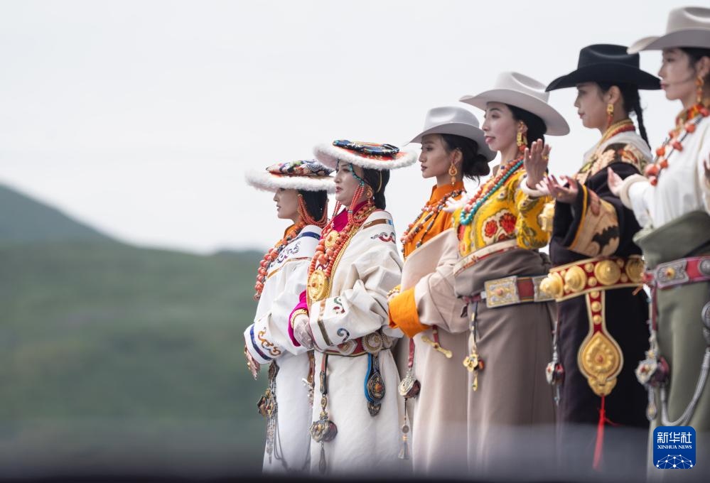 8月10日,在四川省色达县,当地藏族群众穿着藏族服饰进行展示。
