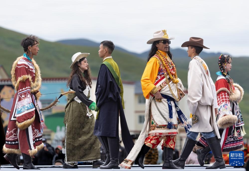 当日,一场藏族服饰秀在四川省色达县第二届“福地色达·金马之邀”游牧文化旅游季启幕仪式上举行,吸引众多游客观赏。