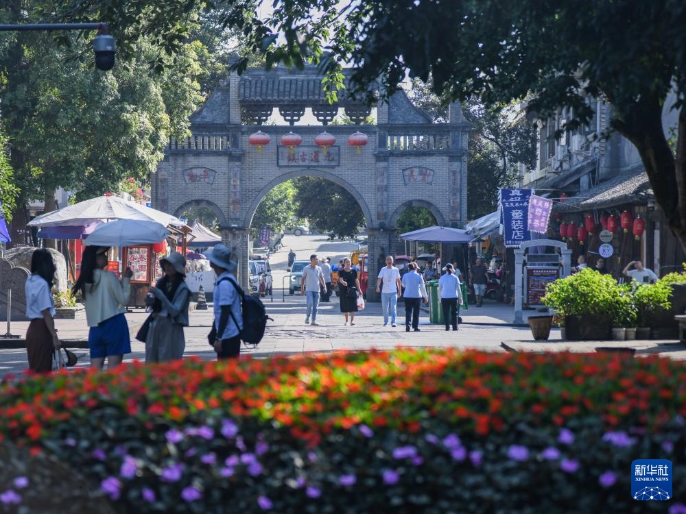 8月13日,游客在四川省崇州市元通古镇观光游览。