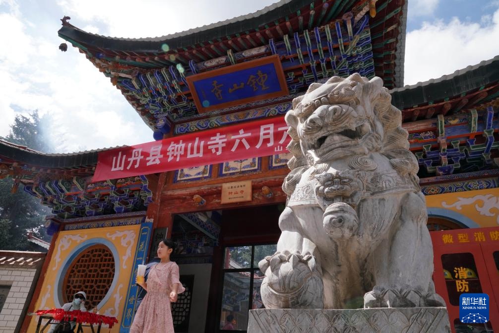 7月11日,农历六月初六,钟山寺六月六庙会在焉支山举行,人们来到钟山寺游览祈福。