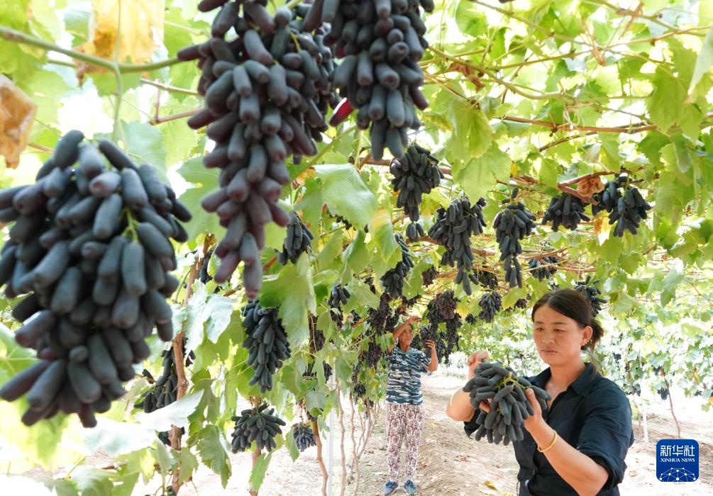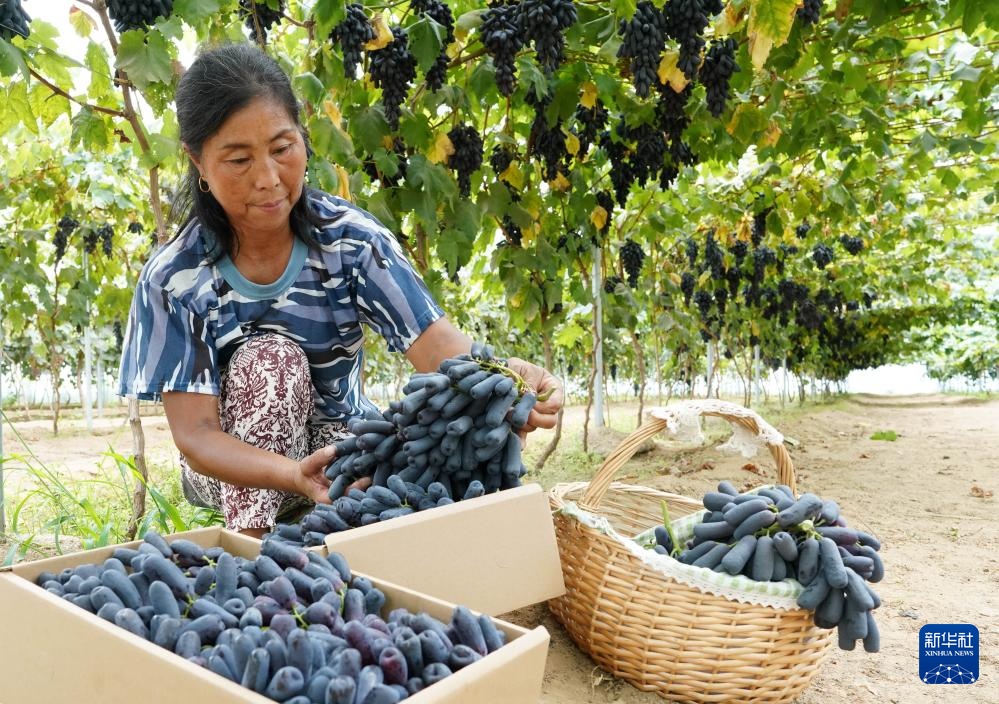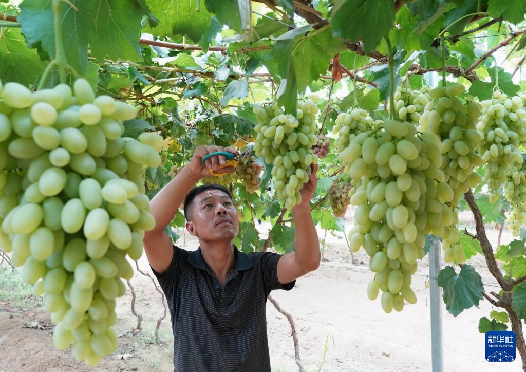 近日,河北省昌黎县的5万多亩葡萄进入成熟期,果农们开始采摘,供应市场。近年来,素有“葡萄之乡”美誉的昌黎县积极引导农民更新葡萄种植品种,规模化发展美人指、蓝宝石、玫瑰香等葡萄种植,促进农业增效、农民增收,助力乡村振兴。