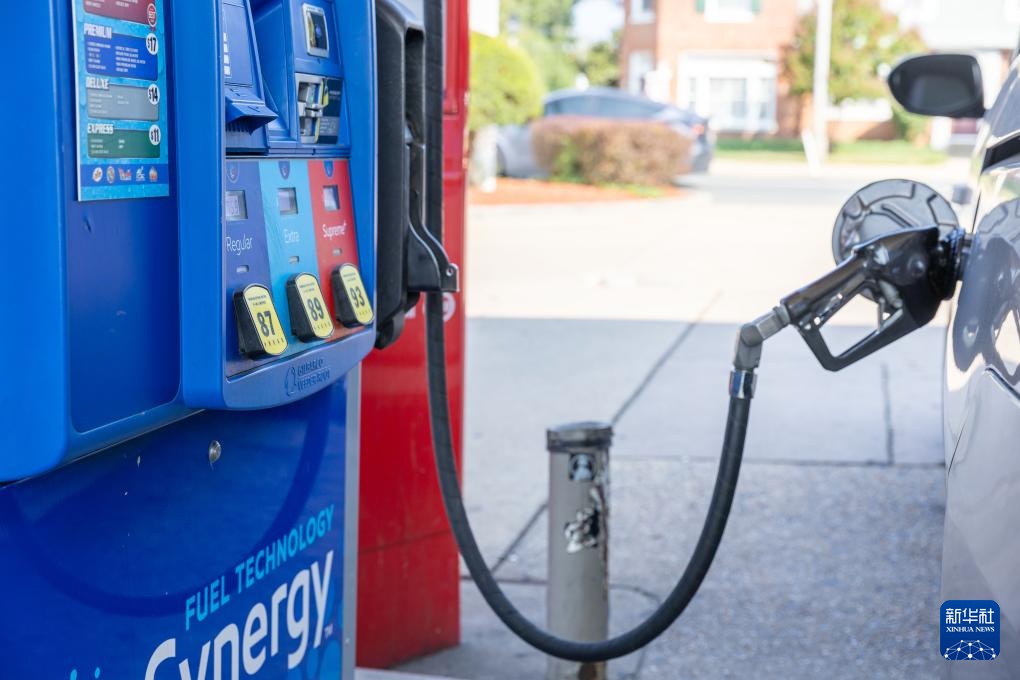 8月14日,一辆汽车在美国弗吉尼亚州阿灵顿的一座加油站内加油。