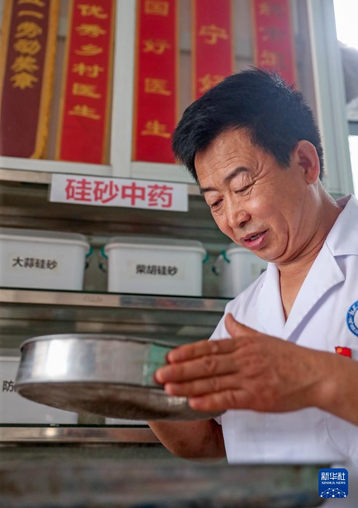 过去的30多年里,梁春荣守护着乡亲们的健康,也见证了家乡的沧桑巨变。近年来,彰武县大力推进荒漠化治理工作,通过河流综合治理、积极植树造林、改变耕作模式等多种方式补充地下水位,遏制土壤沙化。当初年富力强的梁春荣走在沙坨子里一步一陷,如今年逾花甲的他在林间小路走得步履轻盈;当初在沙坨子里行医,梁春荣发现脚下的硅砂和中药一起熬制,药力渗入效果很好,如今他发现林中树木根部的沙土药用价值更大。当初梁春荣诊治过很多患有风寒和呼吸道疾病的乡亲,如今此类患者大大减少。沙地变绿造福了一方百姓,也让这位老村医的行医之路不再坎坷艰难。