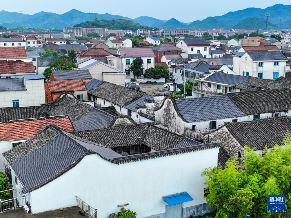 这是8月14日拍摄的诸暨市赵家镇花明泉村内的古宅院(无人机照片)。